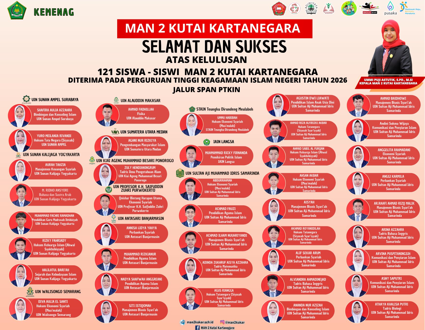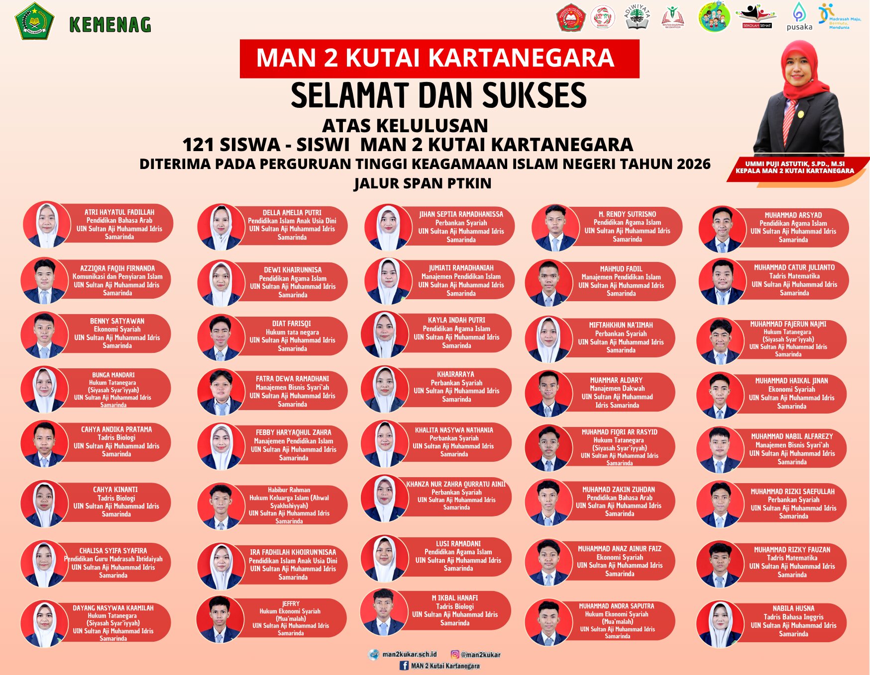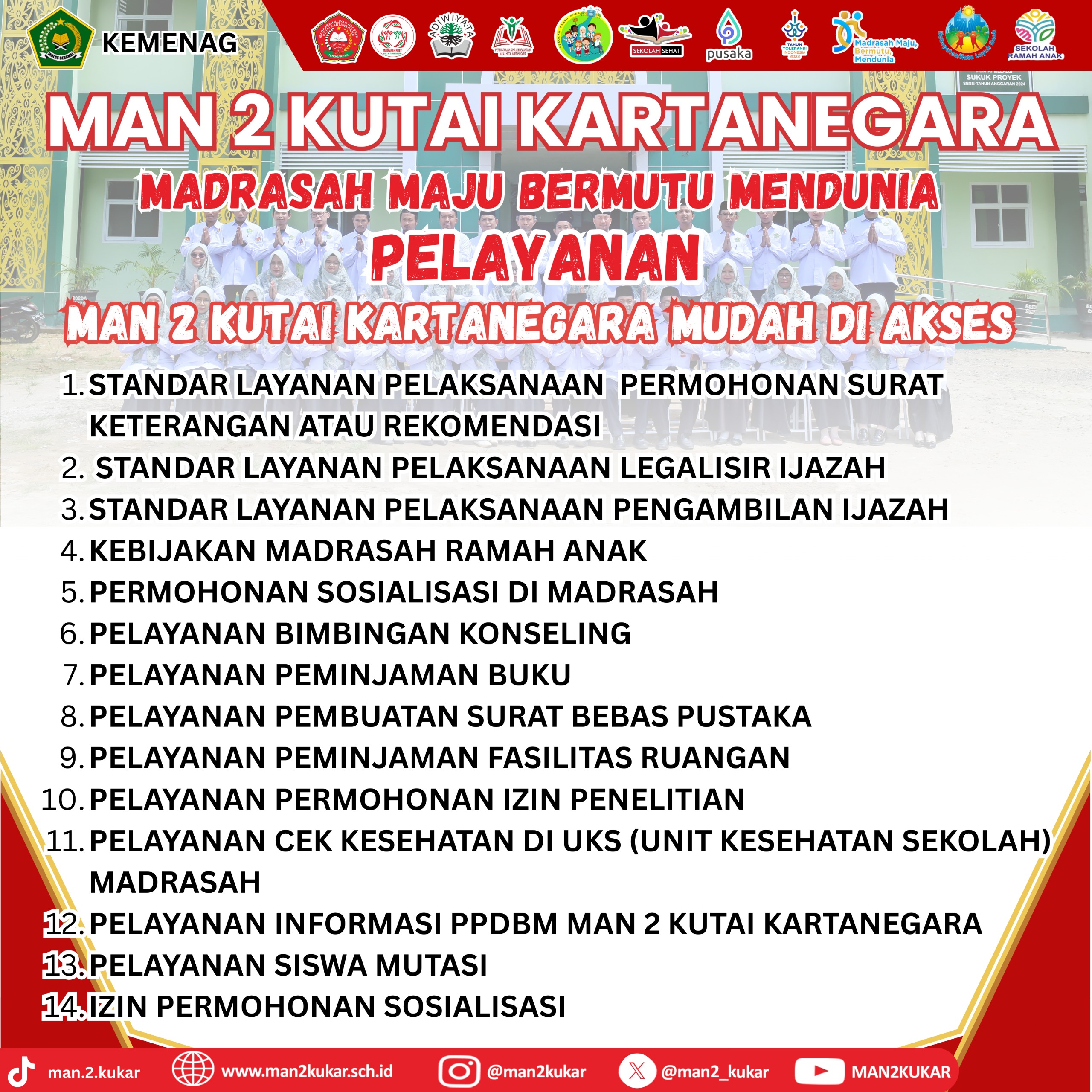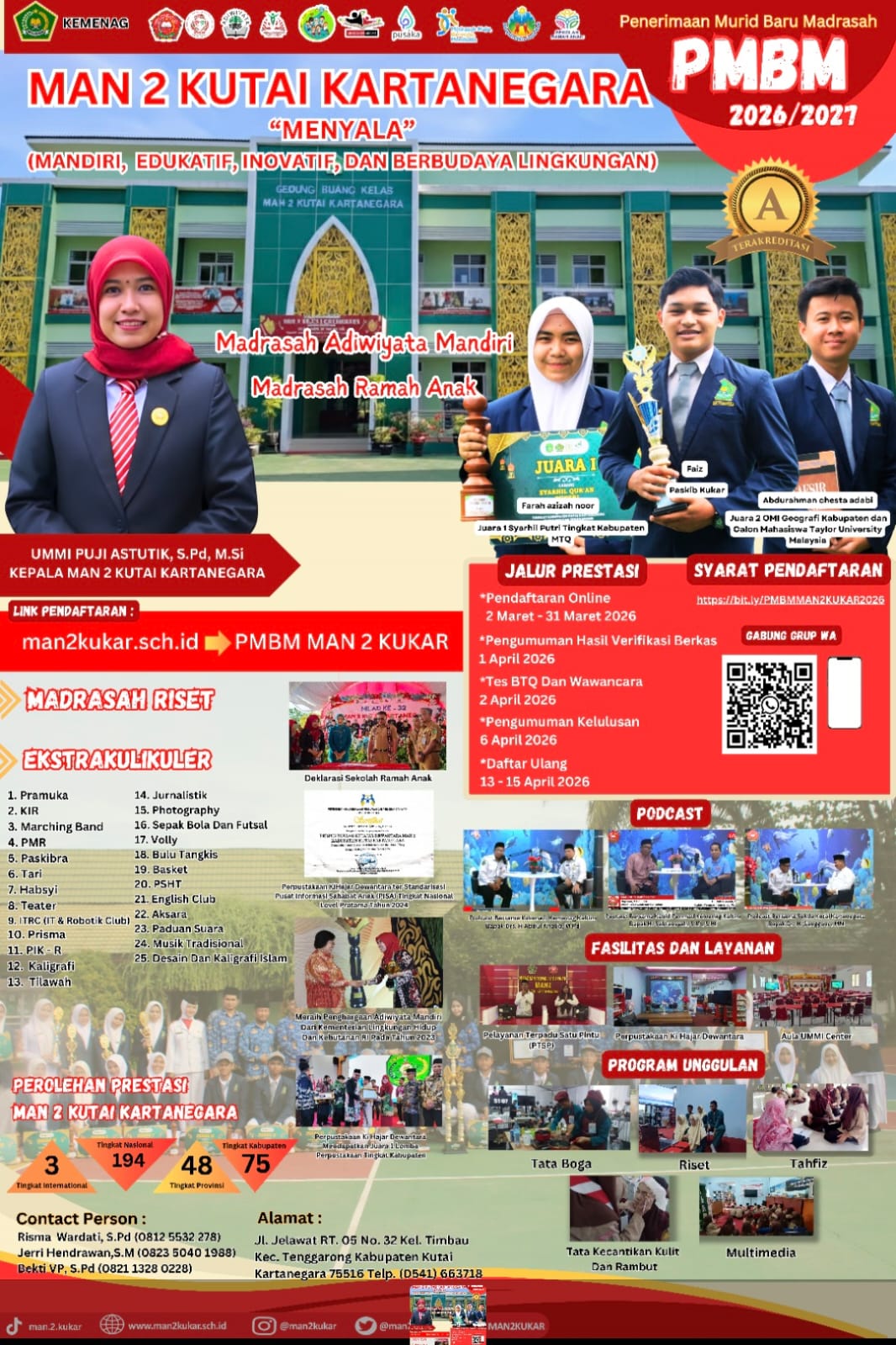 Assalamualaikum Wr Wb…. BissmillahirrahmanirrahiimWelcome to MAN 2 KUKAR…Selamat datang di dunia pendidikan MAN 2 KUKAR. Kami merasa sangat bangga mendapatkan perhatian dan kepercayaan dari Bapak-Ibu sekalian. Kami akan berupaya untuk dapat menjalankan amanah ini dengan baik agar pertanggung jawaban di hadapan Allah SWT kelak menjadi ringan.Di sini kami mengajak anda para orang tua siswa untuk berpartisipasi membangun masyarakat pembelajar dalam rangka menyongsong era baru bagi...